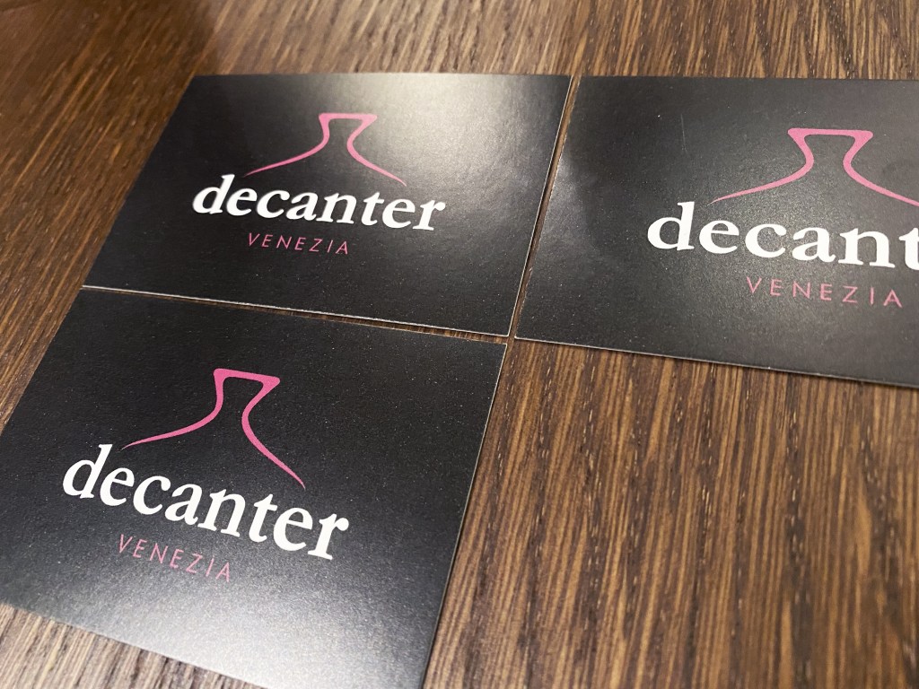Decanter Logotype design for a new winebar, font design, logo and personalized business cards. Related