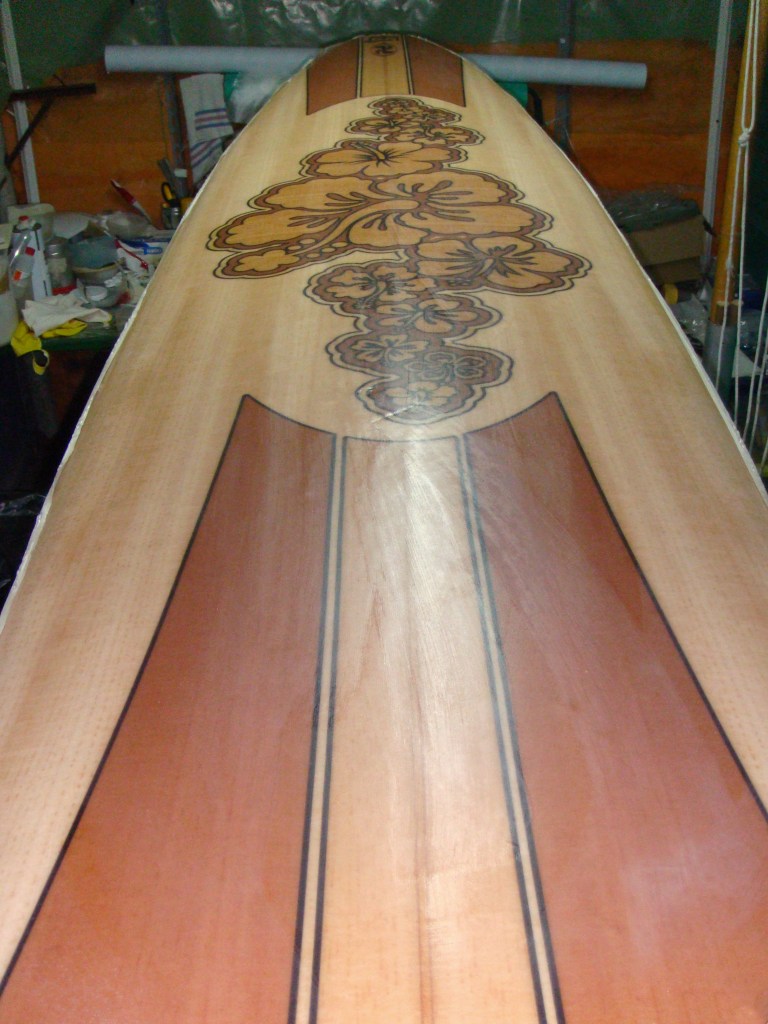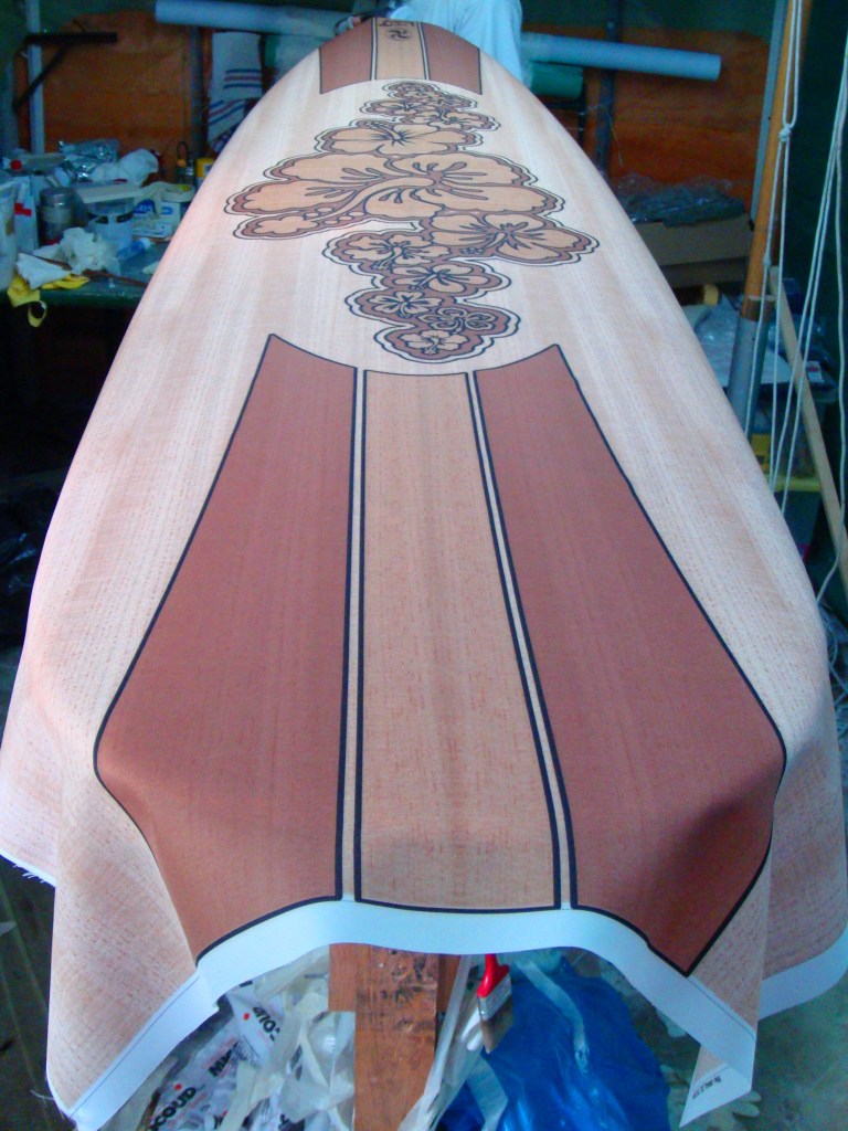 Surfboard customization Graphic design and resin glass fabric sheet for a personalized mini malibu surfboard Related